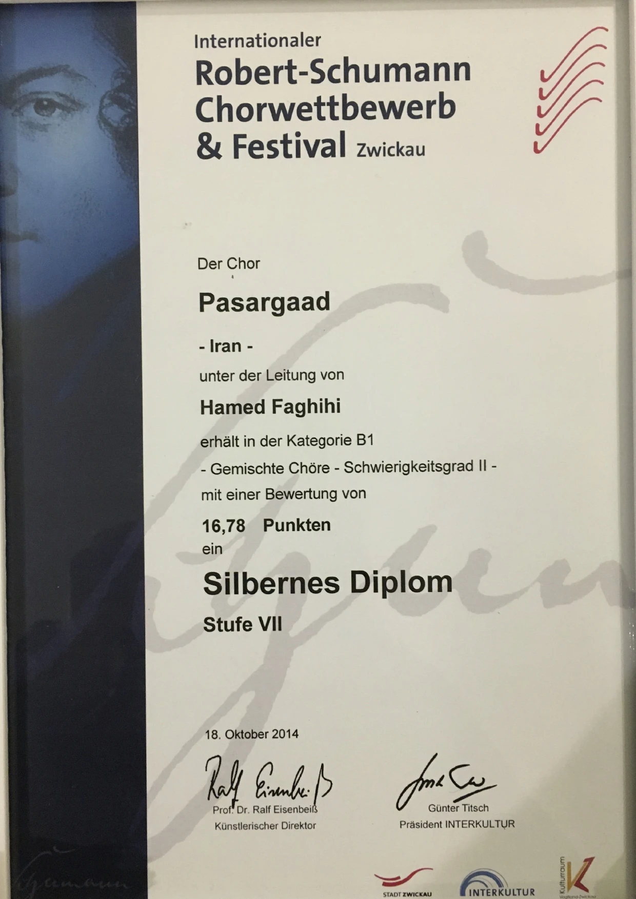 دریافت دیپلم نقره بخش میکس گر جشنواره بین المللی روبرت شومن آلمان مهرماه ۱۳۹۳