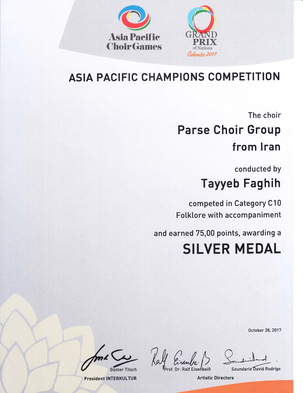 دریافت مدال نقره بخش فلکلور مسابقات آسیا پاسیفیک گروههای کر سریلانکا ۱۳۹۶